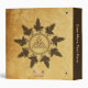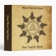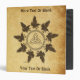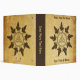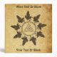 Nine lively ravens (Corvus corax) circle around a knotted Norse/Celtic ring. A triquetra, a triangular figure of three interlaced arcs, appears at center. Everything is superimposed on an old paper background image, giving it a medieval feel. There are two places for you to customize this product by adding your own text on the front, and another on the spine.