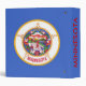 Crafted with attention to detail, this binder proudly displays the flag of Minnesota, featuring a blue field with a gold fringe, centered around the state seal depicting a farmer plowing a field, a Native American riding a horse, the state motto "L'Étoile du Nord" (The Star of the North), and a river and tree.