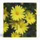 Bright daisy-like yellow flowers with orange centers are springing up from the dark green foliage behind. Certain to brighten any scholars room during dreary winter months.