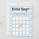 Blue and white Bingo game for bridal showers. Hand drawn white horizontal stripes.