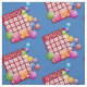 Bingo cards and bingo balls on a blue background, but the background color can be changed to any other that you prefer. Use the customize button and the color picker to change the color.