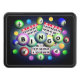 Bingo design loaded with colorful bingo balls and bingo playing cards