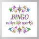 Share your love for bingo and how it brightens your life with these colorful stars, flourishes, and the words - Bingo Makes Life Sparkle.