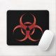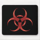 The biohazard symbol in shades of red with line shading. T-shirts, sweats, buttons, mugs, bags, gifts.