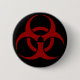 A black button with a large dark red biohazard sign.