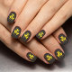 Black and yellow caution biohazard sign nail art for women and girls. Great for a zombie Halloween costume or party.