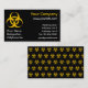 Yellow biohazard warning icon on black background. Custom text. Seamless pattern at back side.