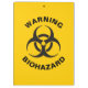 Biohazard warning icon. Custom text. Seamless pattern background at front side.