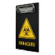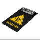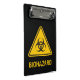 Biohazard triangle warning sign. Custom text. Seamless pattern background at the back side.