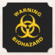 Biohazard warning icon on black background. Custom text.