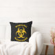 Yellow biohazard warning icon on black background. Custom text. Seamless pattern background at back side.