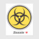 Sticker featuring a black biohazard symbol on a yellow circle with black outline