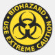 Biohazard - Use Extreme Caution - biohazard warning sticker in yellow and black.