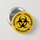 Biohazard - caution yellow button pin with black lettering and biohazard symbol.