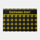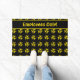 Black doormat with a repeating biohazard symbol pattern and customizable text bar in bright yellow.