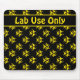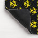 Black mousepad with a repeating biohazard symbol pattern in bright yellow and editable text field for easy customization with a name or message.