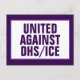 United against the Trump Administration's anti-Constitutional DHS, including ICE , and the destruction they are doing to our country. ICE, with the full force of the US government's executive branch and a bunch of spineless weasels in Congress, are assaulting, kidnapping and trafficking people, and worse. Bipartisan dark purple. Design description: This is a text-based design with limited decorative elements. The text reads, "United against DHS/ICE" in all caps dark purple sans serif letters on a white background in the center of the design space. The only decorative element is a dark purple border, with a light purple inside edge.
