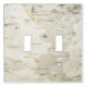 Pretty white birch tree bark lightswitch with changeable background color - shown with white. Changing the background color will give it a tint. A beautiful nature pic as part of the Birch Tree complete bedroom set or by itself as an cool nature accent to your home. Double toggle shown.