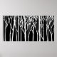 Birch Forest by Leslie Peppers is a peaceful artwork in black and white Minimalism of birch trees set against a midnight background on a fine art print aka poster for home or office