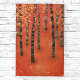 Painting of a birch or aspen forest in the fall. Red, orange and yellow semi abstract woodland.