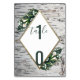 Birch Tree Rustic Bark Woodland Wedding Table Number Cards - features a rustic birch tree bark background with floral elements of fern, calla lily single flowers, baby's breath, leaves and more. The text box is an elegant triangle with a faux foil gold printed frame.