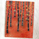 A modern abstract landscape painting of a birch or aspen tree forest in the autumn in rich tones of red, orange and yellow. Original art by Nic Squirrell.