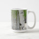 Closeup of a group of birch trees showing details of their beautiful white bark and light green leaves at the top
