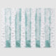 A striped design of white birch trees mingled with winter snowflakes. In colors of teal and white. A modern snowy winter scene.