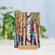 This colorful mini print features an abstract view of the white bark of several birch trees in a pretty autumn forest. This tabletop print, with it's bold colors and abstract style, will complement modern or contemporary decor.