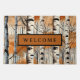 This rustic outdoor birch tree forest welcome mat will make all your guests feel so welcome into your home. Beautiful earthtone colors of white, black and shades of rust and orange foliage. In the center it says welcome, but that is completely customizable. You can change that to your family name if you like! A variety of sizes are available.
