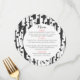 Whimsical birch trees design small round menu. Personalize text as preferred and add the bride and groom's name or monogram on back.