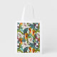 I own a lot of reusable grocery bags, but this one holds its box shape and simply stands up on its own even if there is nothing in it. Its stiffer than your regular reusable bag too, and the material is water resistant. I poured water on the exterior and it didn't penetrate inside to the other side. I'm buying a couple more. Wish I knew how durable these bags were or I would have purchased a few more with my initial order. I also like how it folds and buttons up when not in use, making it easy to put into a handbag or luggage. I haven't used this bag yet, as I purchased it for travel use, like when you're at the airport and need to small sturdy bag to place any airport purchases in, like food, souvenirs etc. I can tell you when you first see this bag, it looks very cheap, but after closer inspection of the material and the seams its a very sturdy reusable bag. I tested it out by putting some really heavy objects inside and I could not observe any stress to the bag at all. Another thing I like about it, is the fact the medium size that this is makes it easy to just carry it in your hand without the bottom of the bag scraping the ground, like most other bags do when you're short. That alone, deserves 5 stars. I just wish there were more colors to choose from! The PDX Airport Carpet printing looks just like the photo, and using this bag during travel might be a conversation piece when/if a native from Oregon happens to see it.
