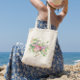 Bird and flower watercolor tote bag