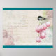 Bird and Flowers with Handwriting Shabby Vintage Poster