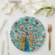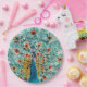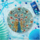 Beautiful bird art featuring a peacock displaying his feathers and easily personalised with text. This colorful emerald green and turquoise peafowl bird is from my original glass painting. ©Annabel Potter