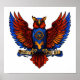 A vibrant and detailed poster showcasing a majestic bird in flight, wings fully spread. The bird is depicted in rich hues of blues and greens, with intricate feather patterns highlighted. The background features a soft gradient sky, transitioning from dawn's golden light to a serene blue, with wisps of clouds. Below the bird, a landscape of lush trees and a distant lake adds depth. The poster title, "Freedom in Flight," is elegantly placed in the top corner, with minimalist fonts that don’t distract from the central image.