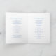Cute bird couple line art graphic drawing of open bird cage hanging from a blossoming spring tree with hearts in shades of blue. Chic modern wedding design part of the blue bird cage romantic wedding collection. Edit these wedding programs with your own name, dates, ceremony wording, wedding party attendants and thanks. Unique drawing and design by Sarah Trett for www.mylittleedenweddings.com on zazzle.