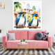 symbols of the Colombian identity, colorful and vibrant works a fusion of exuberant nature with Andean landscapes and exotic animals and urban elements such as buildings, people, the path in the loss of biodiversity, while celebrating the cultural and natural wealth of their country.