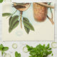 This decorative art print displays a bird couple setting up their nest. The illustration conveys a feeling of togetherness and harmony while the soft pastel green, beige and brown colors create a pleasant calming feeling. Choose this design for any rustic home decor products.