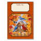 A bluebird, blue jay, chickadee, nuthatch, and cardinal gather at a bird feeder for an autumn feast, on a fall colored orange background. Artwork created from an original painting by wildlife artist Crista S. Forest.