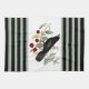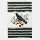 Accessorize your kitchen with a set of blackbird designed kitchen or hand towels. This towel features a greenish-gray and black striped with a white overlay for the watercolor blackbird design. Buy a set of towels for yourself or give as a gift to that special someone.