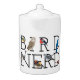 It was great to be able to be creative with my own pictures, and add fonts and other options Zazzle makes available to make my gift personal. The teapot became a special anniversary keepsake my brother and his wife raved about. Just the way I ordered it. I probably should have made the lettering a little darker, or white to stand out against the sky in the photos, but it turned out well.