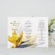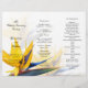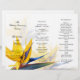 Bird of paradise wedding program to fold into thirds. Pretty, exotic yellow flowers decorate paper with three sections of text templates. The paper will be folded (by the customer) accordion style with a front, middle and last page. Text is black with a title, names, location and date on the front. The middle section is for the ceremony order and the last page is for listing the officiant, parents, and wedding party.