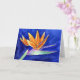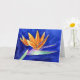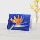 The vibrant fan like crown of orange petals of a bird of paradise flower are in contrast to the deep plush royal blue background. The watercolor art flower painting features a profile view of the bird of paradise flower. This flower is known as the Crane Flower in South Africa. Personalize this Bird of Paradise flower greeting card or note cards with your own text and images using the "Customize It" button to create a special Bird of Paradise flower gift!