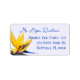 Return address labels with bird-of-paradise flower design. Script along the top for name, or names, with printed text beneath. The address can be up to four lines. Lavender background, bright yellow, exotic flower and bright blue fonts. Also, use this wide label as a mailing label and order blank to print your own addresses.
