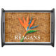 Your name on a beautiful bird of paradise on a woven wicker print pattern makes a stylish summer theme serving tray. (Not actual wicker, it is a printed illustration.) MATCHING items in our store.