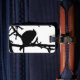 Make your baggage stand out on an airport carousel with unique tag designs! This contemporary fine art luggage tag features a black and white modern abstract pattern of a silhouette Dark-eyed Junco (Junco hyemalis) perched on a bare branch high in a tree. This bird is actually a kind of small, gray and white sparrow. The back has all your personal information as well as another little bird. All text can be customized.