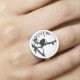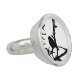 This ring features a black and white modern abstract pattern of a silhouette Dark-eyed Junco (Junco hyemalis) perched on a bare branch high in a tree.