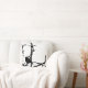 This contemporary fine art throw pillow features a black and white modern abstract pattern of a silhouette Dark-eyed Junco (Junco hyemalis) perched on a bare branch high in a tree. This bird is actually a kind of small, gray and white sparrow.