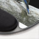 The plastic backing is nice and sturdy. The grippy pads underneath keep the mouse pad where I put it on my table. The pad the mouse sits on is cut well to fit the backing. The wrist pad is perfectly soft, supportive, and thick. I'm left-handed, and this mouse pad works just as well for me as it does for my right-handed friends. I'm the designer of HippieClecticHope products. I'm blown away by how well my intricate fractals turn out on the tangible items in the Zazzle Marketplace. This particular mouse pad ***appears*** like a 3D object... A mathematically-engineered rainbow black opal, inlaid under transparent fabric...